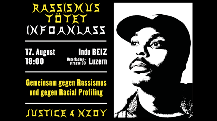 Am 17. August erzählen Angehörige von Nzoy und Mitglieder des Bündnis Justice for Nzoy von Nzoy, berichten über den Fall und informieren über Polizeigewalt und Racial Profiling in der Schweiz.