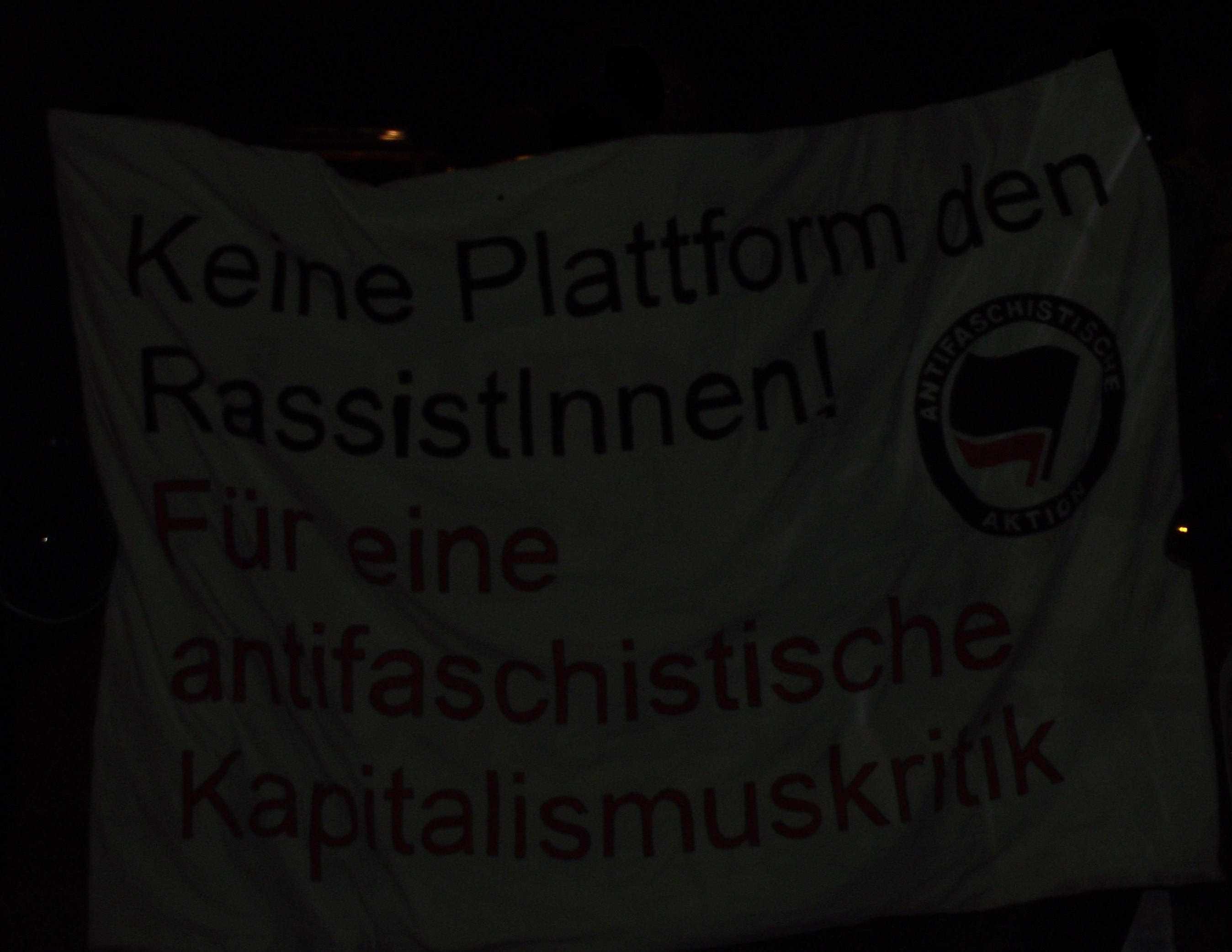 Die DemonstrantInnen wurden unterwegs von den Bullen aufgefordert auf dem Trottoir zu laufen, deshalb kam es zu einigen Rangeleien.