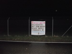 Wir haben in der Nacht vom 20.01.12 auf den 21.01.12 fünf Transparente im Umkreis Luzern in Solidarität zu Marco Camenisch, der sich seit dem 20.01.12 bis am 29.01.12 gegen das WEF im Hungerstreik befindet gehängt.