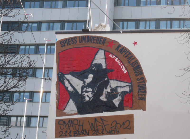 In der ganzen Schweiz werden Aktivitäten gegen das WEF rigoros verhindert, während in Davos die Reichen der Welt weiterhin ungestört diskutieren, wie sie die Krise auf die Bevölkerung abwälzen können. Diese Planung von Unterdrückung, Krieg und Ausbeutung wird ohne Rücksicht auf Verluste durchgesetzt. Schon Kritik an diesem Unrecht wird unter Berufung auf Kleinigkeiten wie Bewilligungen zerschlagen.