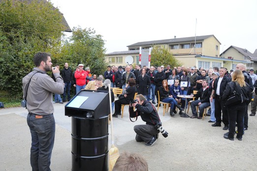 Es gehe darum, Respekt für den Volksentscheid gegen den Bau von Minaretten zu fordern, sagte Frommenwiler zu den Anwesenden. Er kritisierte die bernische Bau-, Verkehrs- und Energiedirektion (BVE), die den Bau eines Minaretts «mit juristischen Spitzfindigkeiten» zulasse.