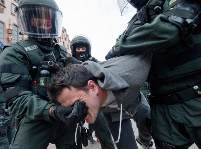 Trotz Totalverbot, Ausnahmezustand und Massenfestnahem haben heute tausende Menschen versucht in das von tausenden Polizeibeamten besetzte Bankenviertel von Frankfurt/Main zu gelangen. Ziel war es den Widerstand gegen die Krisenpolitik von EZB, Merkel und den Irrsinn des kapitalistischen Wirtschaftens ins finanzielle Zentrum des deutschen Imperialismus zu tragen und die Europäische Zentralbank und das Frankfurter Bankenzentrum für einen Tag symbolisch lahmzulegen. Dieses Ziel wurde schon im Vorfeld erreicht, weil Innenbehörden, Polizei und Bankleitungen aus purer Panik die Stadt und sich komplett selbst blockieren und es eigentlich keine Protestierenden mehr bedarft hätte.