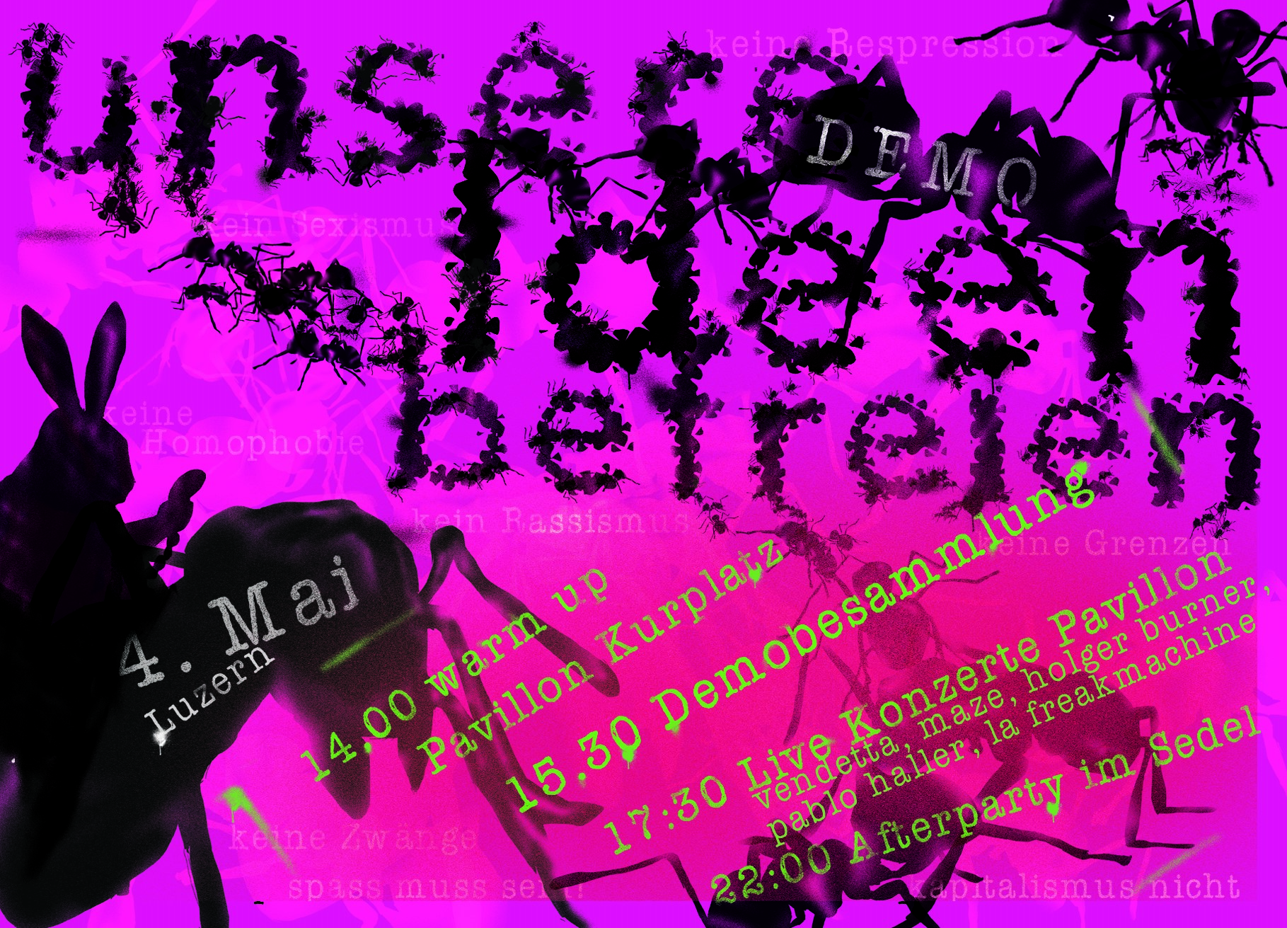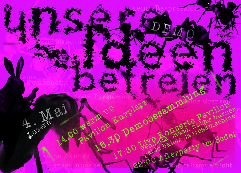 Am 4. Mai ab Mittag beim Pavillon/Kurplatz und auf den Strassen Luzerns und am Abend im Sedel.