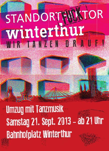Ihr habt es ja bereits vernommen! Hier in Winti wird im September Party gemacht (uf dä schtross! Wo sonst?) für das Andere und gegen all die schicken Archhöfe, Bahnhöfe, Höfe übehaupt… Winti Pöbel United against Standort Winterthur – Föck kapitalistische Stadt(entwicklig)!