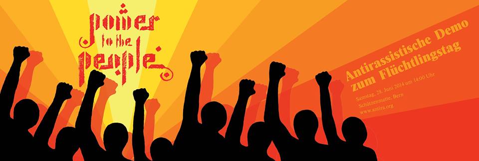 Wir alle – Migrant_innen Communities, antirassistische Kollektive und Einzelpersonen – wehren uns gegen die rassistische Asyl- und Ausländer_innenpolitik. Zum diesjährigen Flüchtlingstag tragen wir unseren Widerstand am 28. Juni 2014 (um 14.00 Uhr, Schützenmatte) auf die Strasse: „Power to the people!“