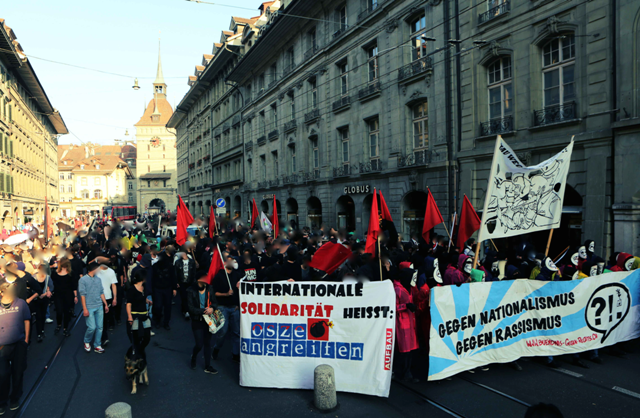 Heute Nachmittag haben in Bern über 500 Personen lautstark gegen Nationalismus und Rassismus demonstriert. Die Demonstration bildet den Auftakt zu der Kampagne gegen Nationalismus und Rassismus, die während den nächsten Wochen in Bern stattfindet.