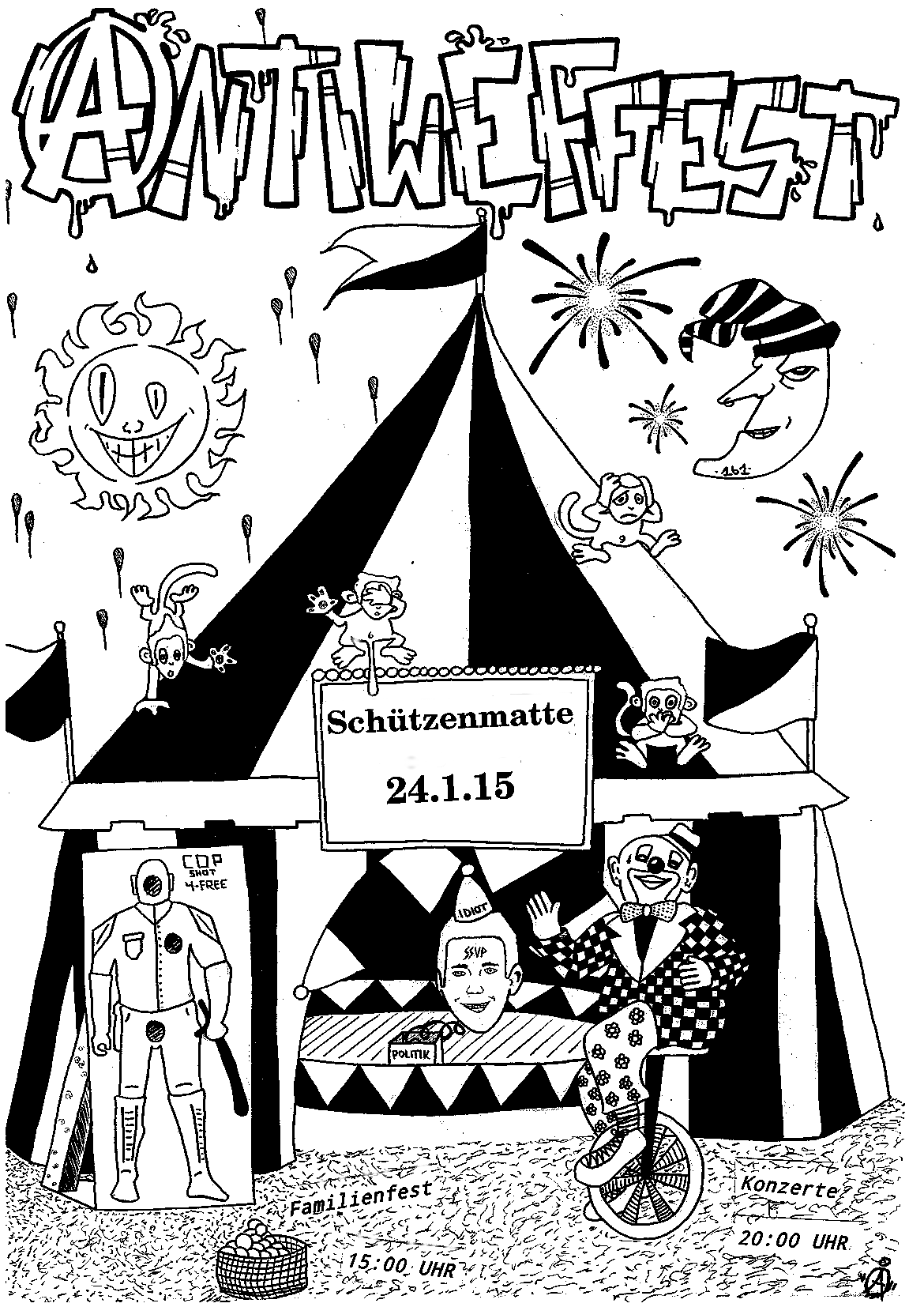 Auch dieses Jahr gegen das WEF aktiv werden! Grosses Anti-WEF-Fest am 24. Januar 2015 auf der Schützenmatte vor der Reitschule in Bern. Genaues Programm folgt
