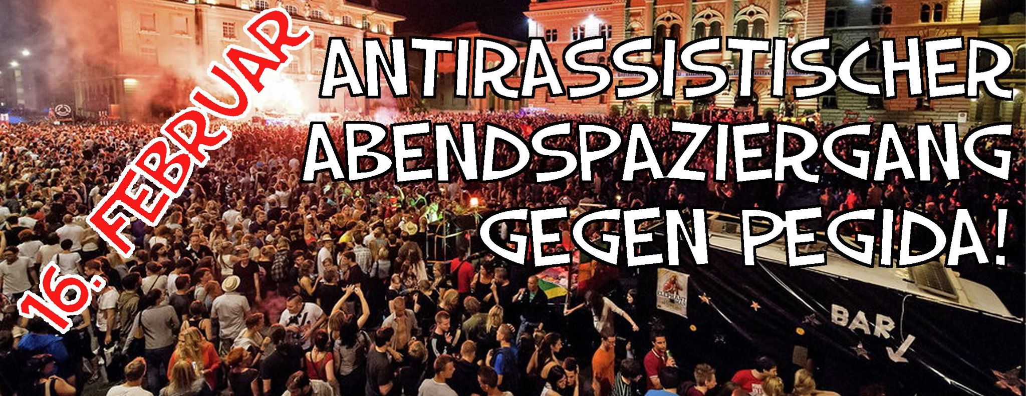 Le mouvement xénophobe et raciste Pegida tente de prendre racine en Suisse. Le 16 février ils prétendent organiser une première démonstration de force. Tenens-leur tête!