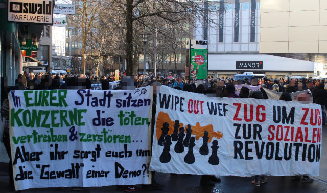 Heute riefen wir zur Anti-WEF Demonstration in Zug auf. Dem Widerstand gegen das WEF wollten sich auf Zugs Strassen mehrere hundert Personen anschliessen.