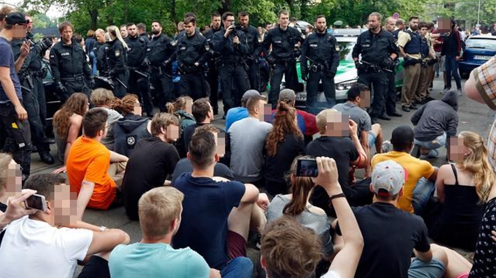 Letzendlich musste die Polizei Mittelfranken, das USK holen, welches gleich nach der Ankunft mit massiver Gewalt und dem Einsatz von Polizeihunden die Blockade auflöste. Unter dem Einsatz von massiver Gewalt, zog die Polizei den Afghanen aus dem Auto, um ihn in einen anderen Streifenwagen zu verfrachten, welcher mit einem gewaltätigen Polizeispalier zur Schnellstraße raste.