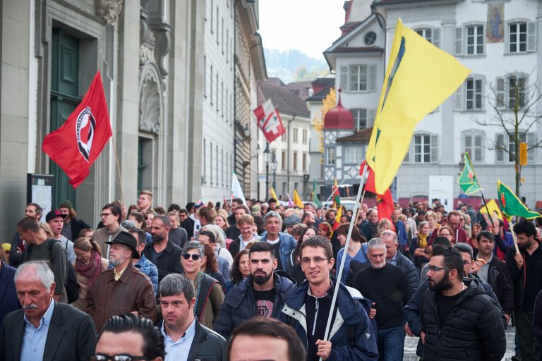 Am Samstagnachmittag riefen 14 linke Organisationen zur Grossdemo gegen den Krieg in Nordsyrien auf. Gegen 15:30 besammelten sich an die tausend Personen auf dem Mühleplatz, bevor sie lautstark durch die Alt- und Neustadt zogen. Vor dem Regierungsgebäude wurden Kerzen und Rosen in Gedenken and die Opfer der türkischen Invasion, niedergelegt und die Schweiz zum Handeln aufgefordert. Die Demonstrant*innen hatten klare Forderungen: