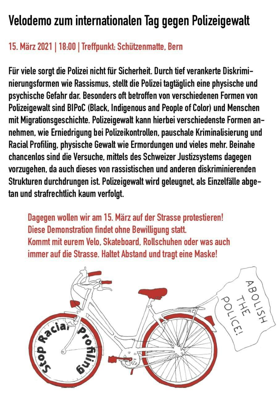 Velodemo zum internationalen Tag gegen Polizeigewalt am 15.3