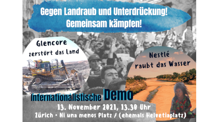 In Zürich findet am 13. November 2021 eine internationalistische Demo gegen Landraub und Unterdrückung statt. Besammlung ist 13.30 Uhr Ni una menos Platz (ehemals Helvetiaplatz). Die Demo ist bewilligt.