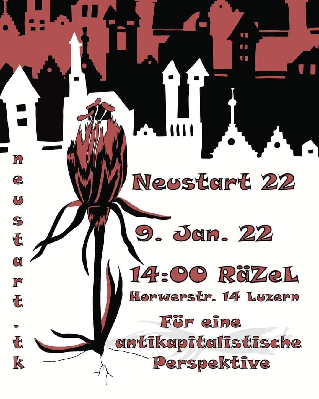 Hast du die guten Vorsätze fürs neue Jahr schon gefasst?Wie wäre es mit mehr Aktivismus?Komm zur Sitzung am 9.1. um 14 Uhr im RäZeL Horwerstrasse 14 Luzern mehr Infos: www.neustart.tk