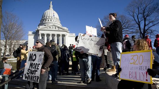 Sie wehren sich gegen Sozialkürzungen und republikanische Politik: 2010 gehörte der rechten Tea Party, nun blasen linke Gewerkschaften zur Gegenrevolution.