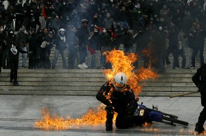 Während die anschließende Demonstration der PAME zum griechischen Parlament friedlich verlief, kam es auf dem Protestzug von GSEE, ADEDY sowie Organisationen der außerparlamentarischen Linken und des anarchistischen Spektrums zu Auseinandersetzungen mit der Polizei.