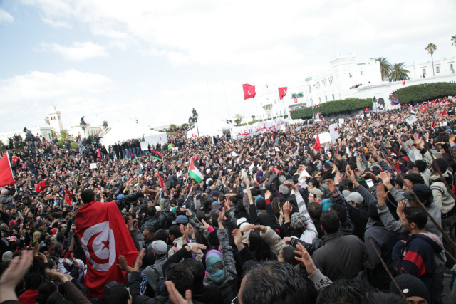 Nach dem Präsident Ben Ali am 14. Januar durch den Druck des Volkszorns geschasst wurde, ist Tunesien wieder in Bewegung, der politische und soziale Transformationsprozess ist auf die gesamte arabische Welt und darüber hinaus über gesprungen findet weiter bei hoher Intensität statt: zur gleichen Zeit gibt es Revolten in Ägypten, Algerien, Marokko, Bahrain, Iran, Libyen, Libanon. Auf der anderen Seite des Meeres wird Griechenland weiter durch ein unstillbares anti-regierungsfieber erschüttert. In Libyen schließlich, ist der im Gang befindliche Bürgerkrieg gleichzeitig eine politische Revolution gegen eine korrupte und blutrünstige Diktatur.