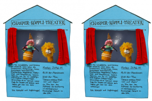 Am Sonntag Abend haben die Fee Schwäfelblitz und Clarence, der schielende Löwe im Haus an der Kaspar-Koppstrasse 95 ihr nigelinageli neues Chasperköppli Theater eröffnet. Judihui.