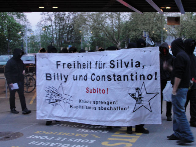 Das Trauma des Leidens unter der staatlichen Repression nahm für Billy, Silvia und Costa in der Schweiz am 15. April 2010 seinen Anfang. Seit sie durch die Polizei angehalten, von der Justiz monatelang (und nach wie vor) in Untersuchungshaft gesteckt wurden und seit die medialen, politischen und wirtschaftlichen Interessenskreise ihre bürgerlichen Muskeln spielen lassen, sehen sich unsere Kumpanen mit einer kalten, isolierten und von Schikanen durchtränkten Gefängnissrealität konfrontiert. Die Quälbarkeit der Körper und der Psyche, durch den Druck der Repression und der perfiden Gewalt durch das Knastsystem, lässt sich nicht verleugnen. Wer nun aber glaubt, dass der Kampf unserer drei anarchistischen Genossen deswegen gemildert wurde, ist sich der Stärke ihrer Überzeugungen und ihres Kampfes nicht bewusst.